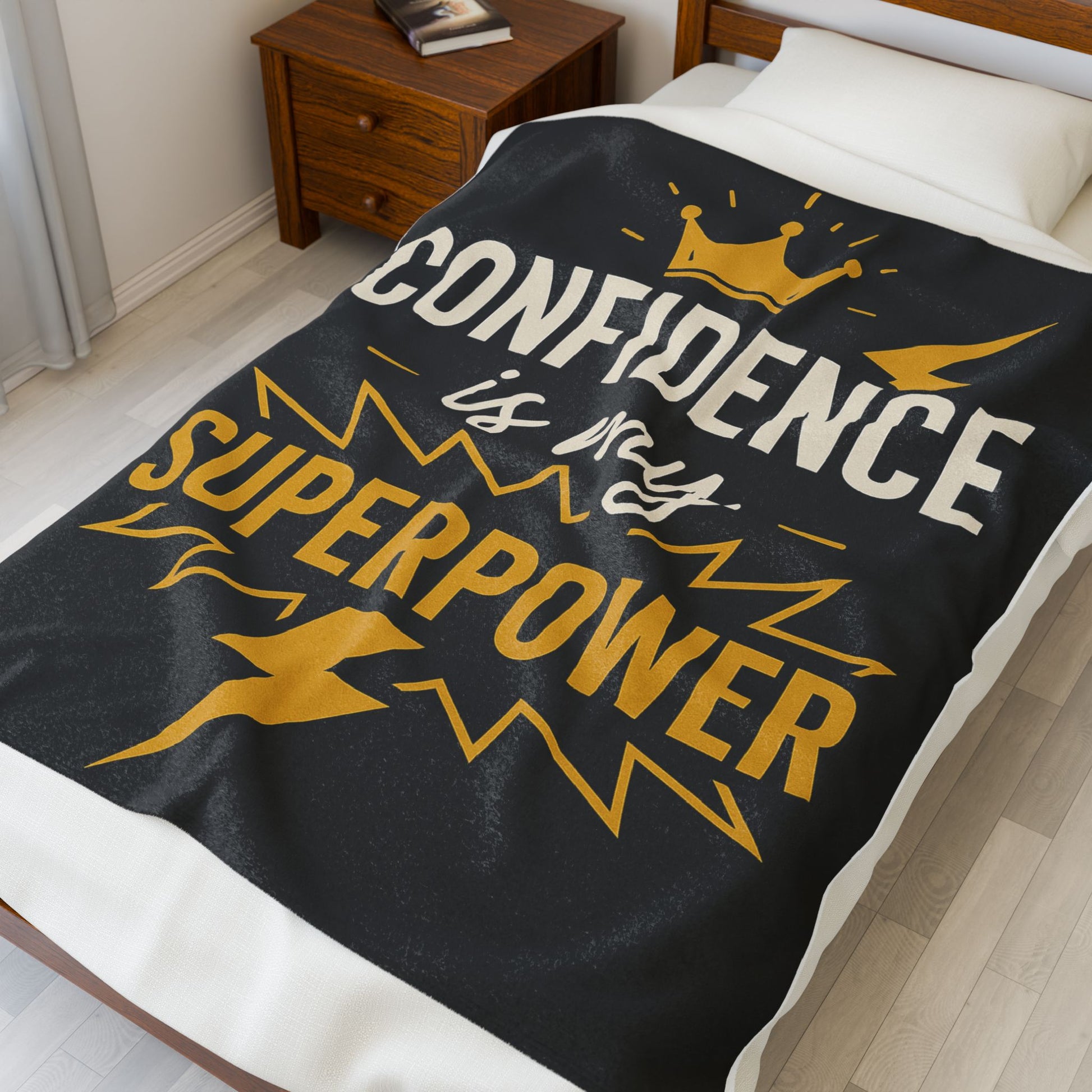 Confidence Superpower Velveteen Blanket, Cozy Throw, Soft Fleece Bedding, Inspirational Home Decor Gift, Courage Words Design