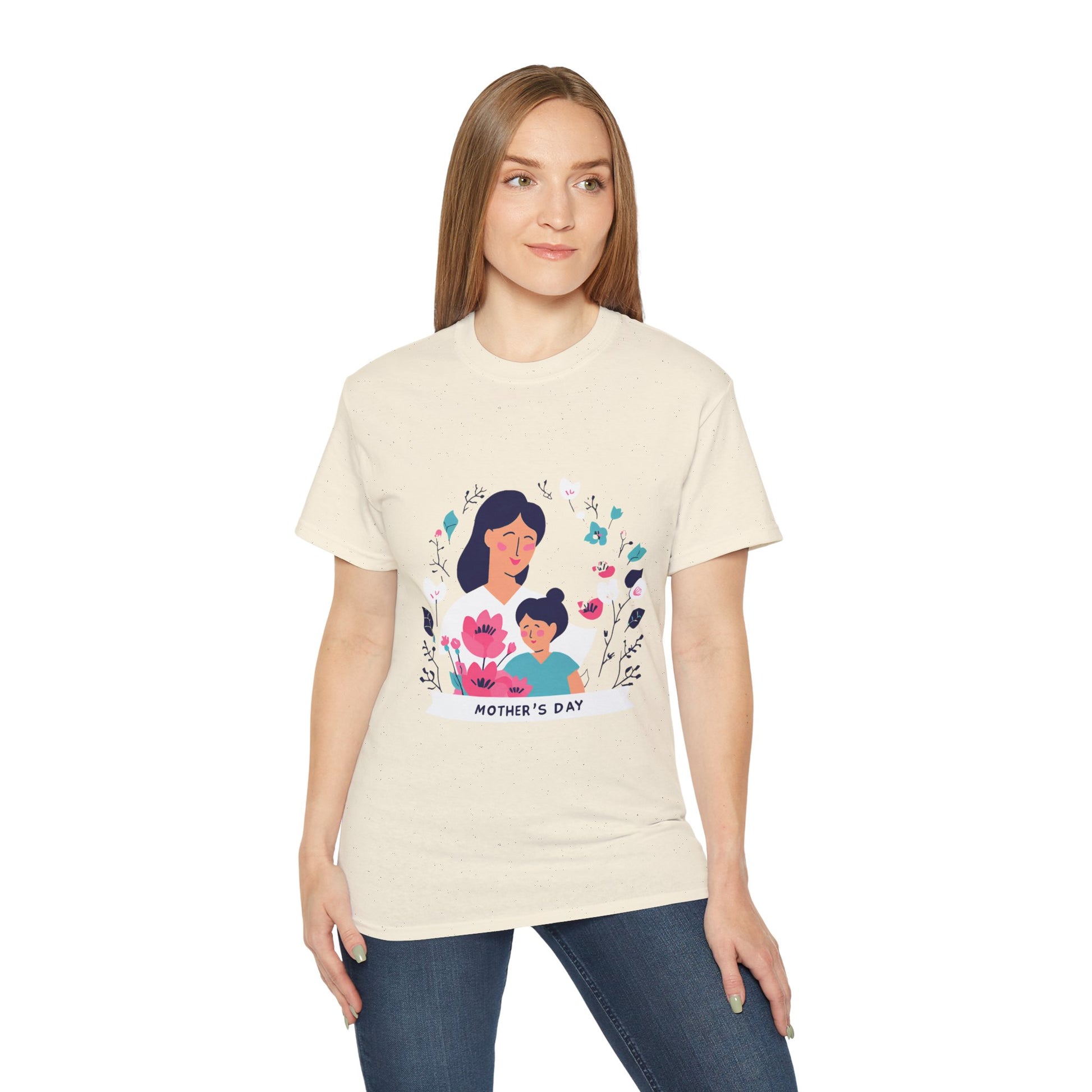 Introducing our Unisex Ultra Cotton Tee, designed for ultimate comfort and style. This tee effortlessly combines laid-back vibes with versatility, making it perfect for any occasion. Whether you're out for a casual lunch or lounging at home, this t-shirt has you covered. Its standout design celebrates love and connection, perfect for gifts to cherished moms on special days like Mother's Day or just to brighten their everyday life. With its classic fit and breathable fabric, it’s tailored for adults who appreciate quality and sustainability in fashion. Celebrate special moments or simply enjoy a cozy day in with this must-have addition to your wardrobe!