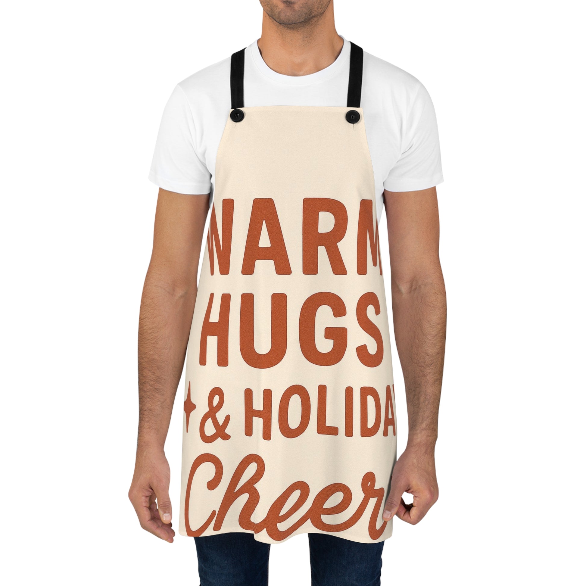 Presenting a delightful apron, perfect for anyone who loves to cook or bake with a dash of style! This apron embodies warmth and cheer, making it an ideal companion in your kitchen. With its charming "Warm Hugs & Holiday Cheer" design, it sets a festive and inviting atmosphere during your culinary adventures, whether you're preparing holiday treats or enjoying a cozy family dinner. It’s a wonderful gift for home chefs, baking enthusiasts, or anyone who relishes bringing joy into their kitchen. Perfect for holidays, family gatherings, and special celebrations, this apron will make every cooking experience more enjoyable and memorable.